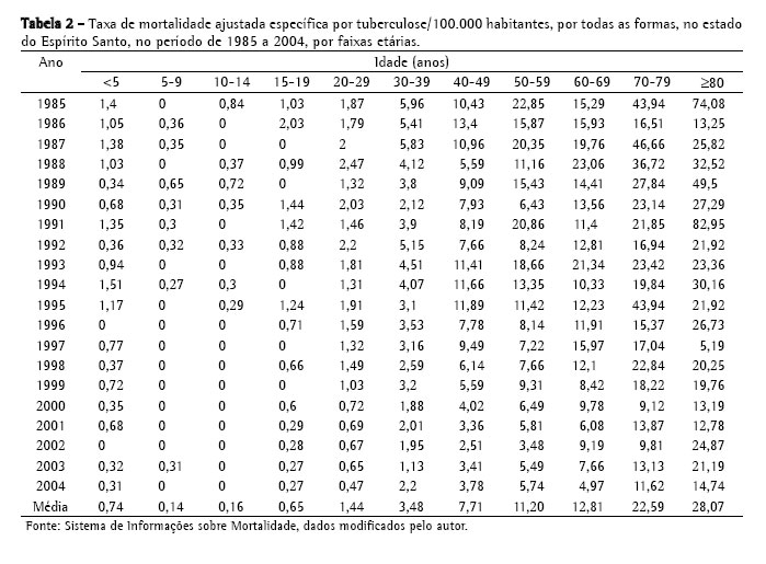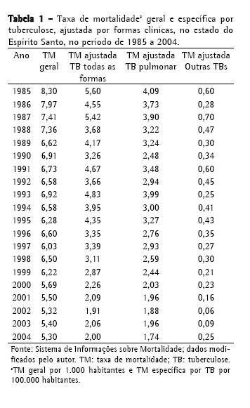Tuberculosis-related mortality in the state of Espírito Santo, Brazil, 1985-2004