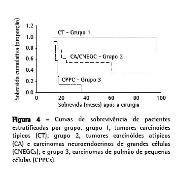 Os pacientes com CPPCs apresentaram a mais curta sobrevivência estimada, e os pacientes com tumores carcinóides típicos, a mais longa.