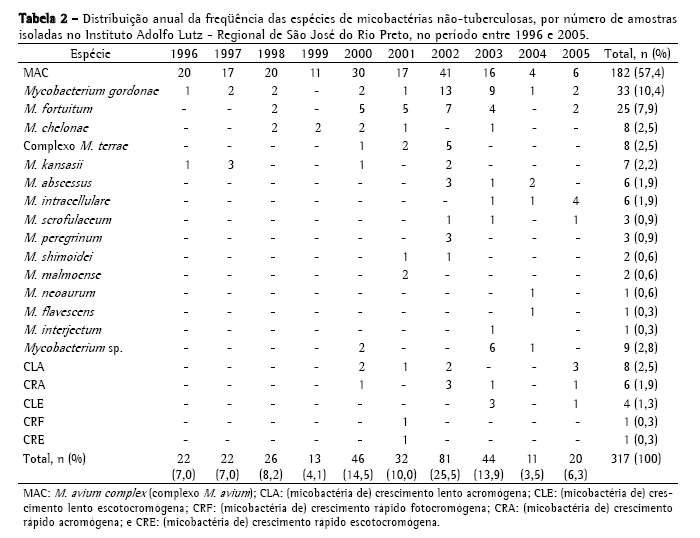 Nontuberculous mycobacteria isolated in São José do Rio Preto, Brazil between 1996 and 2005