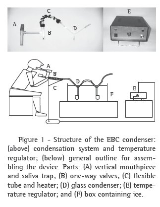 In summary, the device described in the present study corresponds to a low cost system that has disposable parts and allows the collection of simultaneous samples from subjects under various environmental and experimental situations, providing results similar to those obtained with other EBC condensers previously described.