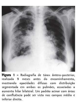 Embora a baciloscopia do escarro tivesse apresentado, de modo consistente, cultura negativa para bacilos álcool-ácido resistentes, o quadro sintomático e os achados radiológicos levaram o médico que a tratava a iniciar o tratamento com drogas antituberculose, que foi mantido por 9 meses, mas que não trouxe alívio dos sintomas.