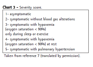 The course of the chILD syndrome varies according to the cause. It can lead to death still in the neonatal period, or the patient can reach adulthood with minimal or no symptoms. A score for evaluating disease severity has been proposed.(7) Higher scores indicate a lower likelihood of survival (Chart 3).