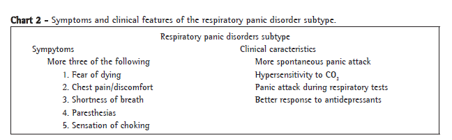 subtypeThere is abundant scientific evidence of a distinct respiratory subtype of panic disorder. Symptoms and clinical features of the respiratory panic disorder subtype are described in Chart 2.