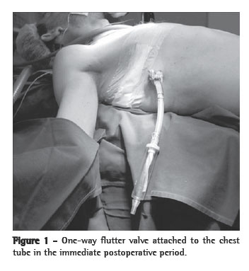 During the postoperative period, lung expansion, duration of drainage using the one-way flutter valve, hospital stay and postoperative complications were noted. The patients were submitted to chest X-rays in the immediate postoperative period, after the removal of the drainage system and during the 90-day, postoperative outpatient follow-up period.