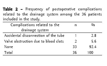 tempo de permanência com o sistema de drenagem, o período de internação e as complicações pós-operatórias. Resultados: Neste estudo,