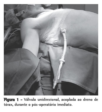 Outros autores demonstraram que o sistema de válvula unidirecional acoplado a uma bolsa ­coletora de plástico é seguro, permite maior mobilidade ao paciente e pode ser mais fisiológico(4) quando ­utilizado no pós-operatório de ressecção pulmonar.(6,7,24)