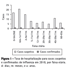 Em 2010, 96 pacientes com suspeita de infecção por influenza A (H1N1) foram hospitalizados no Hospital São Paulo, na cidade de São Paulo (SP). Desses, 4 pacientes (4,2%) foram diagnosticados com influenza A - 3 com influenza A (H1N1) e 1 com influenza sazonal - e 2 pacientes (2,1%) foram diagnosticados com influenza B. A maioria dos casos suspeitos (63,5%) e metade dos casos positivos ocorreram em crianças. A segunda onda de influenza A (H1N1) foi mais fraca em São Paulo. A vacinação pode ter contribuído para a redução das internações devido a essa infecção em 2010.