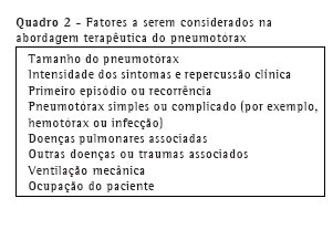 As questões que devemos ter em mente para elaborar um tratamento adequado do pneumotórax são descritas no Quadro 2.
