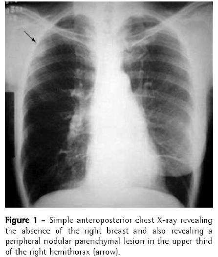Therefore, the pulmonary nodules that appear in patients submitted to mastectomy for breast cancer are not always pulmonary metastases, and the confirmation of the histopathological diagnosis is of fundamental importance in order to define the treatment.(11)