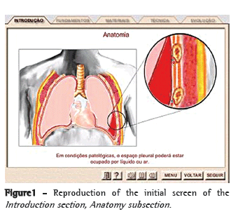 Objective: To develop a multimedia educational computer program designed to teach pleural drainage techniques to health professionals, as well as to evaluate its efficacy. Methods: We planned and developed a program, which was evaluated by 35 medical students, randomized into two groups. Group 1 comprised 18 students who studied using the program, and group 2 comprised 17 students who attended a traditional theoretical class given by an experienced teacher. Group 1 students were submitted to two subjective evaluations using questionnaires, and both groups took an objective theoretical test with multiple-choice questions and descriptive questions. The results of the theoretical test were compared using the Mann-Whitney test. Results: The subjective evaluation of the technological aspects and content of the program ranged from excellent to very good and good. The software was considered highly instructive by 16 students (88.9%), and 17 students (94.4%) thought it might partially substitute for traditional classes. Between the two groups, there was no significant difference in the multiple-choice test results, although there was such a difference in the descriptive question results (p < 0.001), group 1 students scoring higher than did those in group 2. Conclusions: The computer program developed at the Federal University of São Paulo Paulista School of Medicine proved to be a feasible means of teaching pleural drainage techniques. The subjective evaluation of this new teaching method revealed a high level of student satisfaction, and the objective evaluation showed that the program was as efficacious as is traditional instruction.