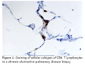 Some authors(14-15) have published studies showing increased concentrations of CD8+ cells in the lungs of smokers with COPD in relation to nonsmokers. Others(16) have also found greater populations of CD8 cells in the peripheral blood of patients with COPD.
