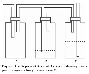 Pecora and Cooper, in 1995,(6) followed by Laforet and Boyd in 1964,(7) recommended a three-flask system of balanced postpneumonectomy drainage of the pleural cavity (Figure 1).