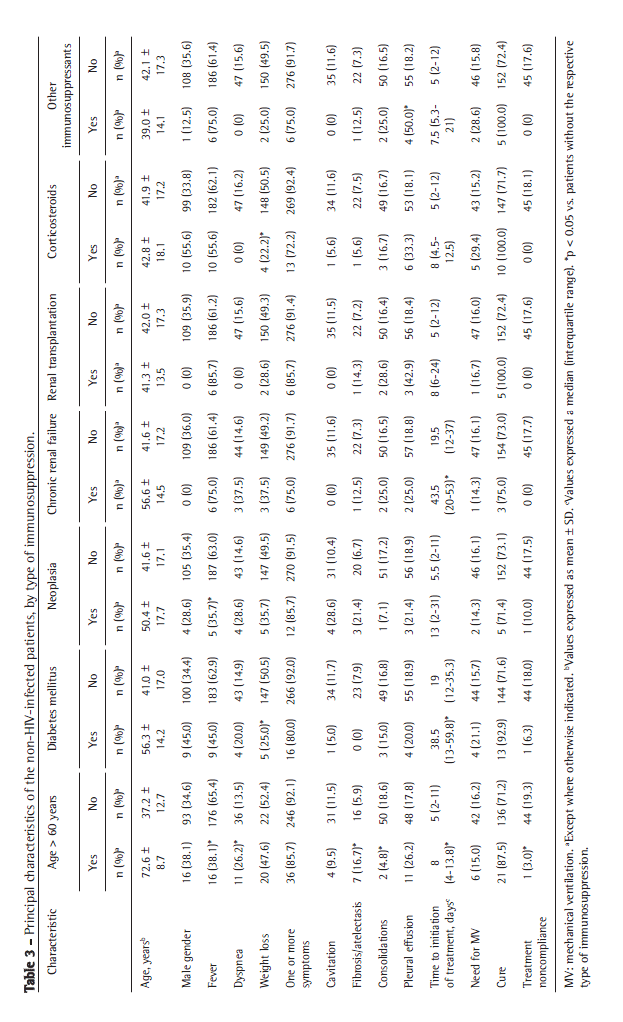 Clinical characteristics and evolution of non-HIV-infected immunocompromised patients with an in-hospital diagnosis of tuberculosis