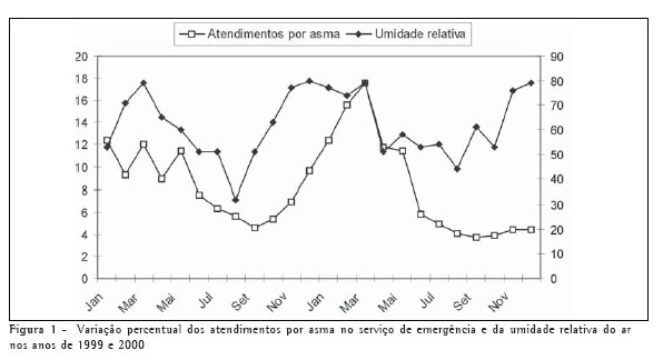 Em conclusão, os nossos dados mostram que as visitas emergenciais por asma sofrem variação sazonal, crescem um a dois meses após o aumento da umidade relativa do ar e caem no período mais seco do ano.