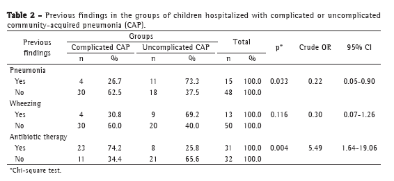 Fatores associados às complicações em crianças pré-escolares com pneumonia adquirida na comunidade