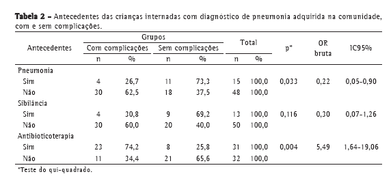 Fatores associados às complicações em crianças pré-escolares com pneumonia adquirida na comunidade