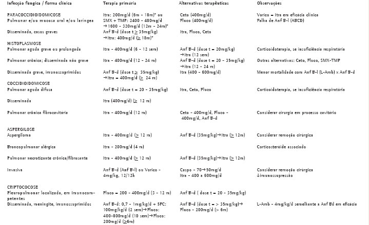 Quadro 1- Terapia antifúngica para adultos com micoses pulmonares e sistêmicas