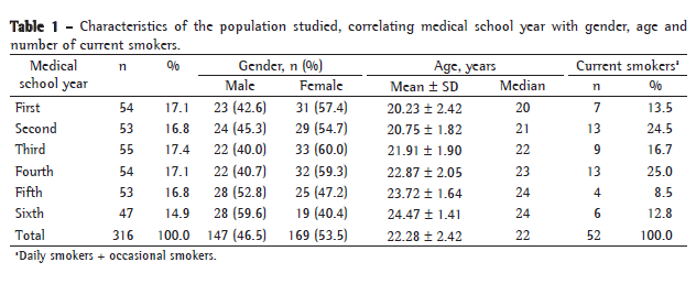 Prevalence of and variables related to smoking among medical students at a university in the city of Passo Fundo, Brazil