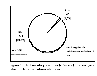 Os consensos normatizam e padronizam o manejo da asma através de recursos como atendimento adequado da crise, medicação de uso contínuo e educação para saúde(17). Em nosso estudo, ficou evidente que para esse grupo populacional, os objetivos ainda não foram alcançados, visto que apenas 1,5% dos pacientes fazia uso de tratamento no período intercrises, e ainda irregularmente, sem diferença significativa nas duas faixas etárias estudadas.