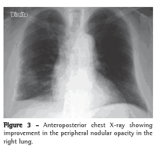 With treatment, the patient presented improvement of the clinical manifestations and the pulmonary alterations resolved (Figure 3).