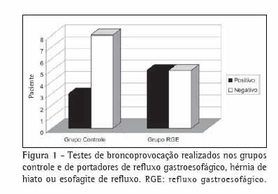 Objective: To identify this vagal reflex using bronchial provocation tests in patients with gastroesophageal reflux disease. Methods: The study group was composed of 10 patients presenting endoscopic evidence of hiatal hernia or gastroesophageal reflux disease, and the control group consisted of 11 patients presenting no evidence of either condition. All subjects were submitted to bronchial provocation with carbachol. Results: The provocation test was positive in 5 (50%) of the study group patients and 3 (27%) of the control group patients (p = 0.64). Conclusion: The hypothesis that the airways of patients with gastroesophageal reflux disease (and no history of asthma-like respiratory symptoms) might be more responsive than those of individuals without the disease remains unproven.