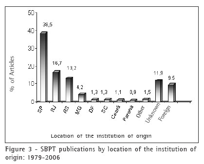 Medline have higher impact factors than do those indexed for LILACS; articles authored by multiple SBPT members counted as only one publication in the name of the first author listed; articles authored by SBPT members that did not pertain to the area of pulmonology were excluded from the results; the institutions of origin considered were those of the first author of the article.