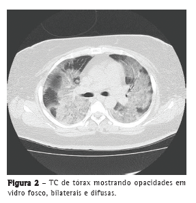 The plasma level of cytokines such as IL-6 and IL-10 was found to be higher in influenza A (H1N1)-infected patients who died or who had acute respiratory distress syndrome than in patients with less severe disease.(9) The mechanism of severe pulmonary inflammation is still unclear. Adipokines released by adipocytes could cause an allergic reaction. In addition, a cytokine storm could easily occur in patients with allergic conditions such as bronchial asthma and rheumatic disease.(10) Because she was obese and had a history of bronchial asthma, our patient was at risk of severe pulmonary inflammation.