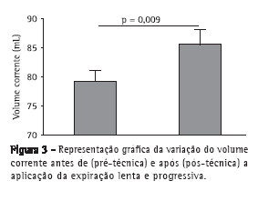 A avaliação do volume corrente (VC) é uma das técnicas mais antigas e simples de mensuração da função pulmonar de lactentes.(12) O VC tem sido estudado como desfecho para a avaliação da eficácia de técnicas não convencionais de fisioterapia respiratória. Os resultados encontrados até o momento, entretanto, são controversos, havendo relatos de aumento do VC em alguns estudos, e de sua manutenção em outros.(8,13-15)
