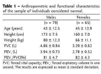 Various reference value equations have been published in recent decades.(14-16) The values expected for individuals presenting a given combination of