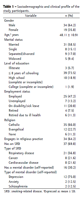 Regarding the sociodemographic profile of the smokers who sought smoking cessation treatment, the findings of our study corroborate data in the literature,(19) with a predominance of women,(20) married individuals,(21) and individuals who engage in religious practice.