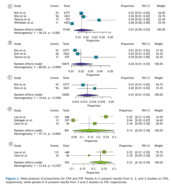 Potential Implications of Observed Heterogeneity Several instances of elevated heterogeneity were observed across our analyses, particularly in the meta-analyses of proportions. Initial pooled prevalence estimates for CPA and PJP showed substantial heterogeneity (I² > 90%), which was mitigated through subgroup analyses and stepwise exclusion of outlier studies. Residual high heterogeneity was mainly confined to descriptive variables, such as sex distribution and the proportion of lobectomy among CPA patients. While informative, these were not central to our clinical interpretations.