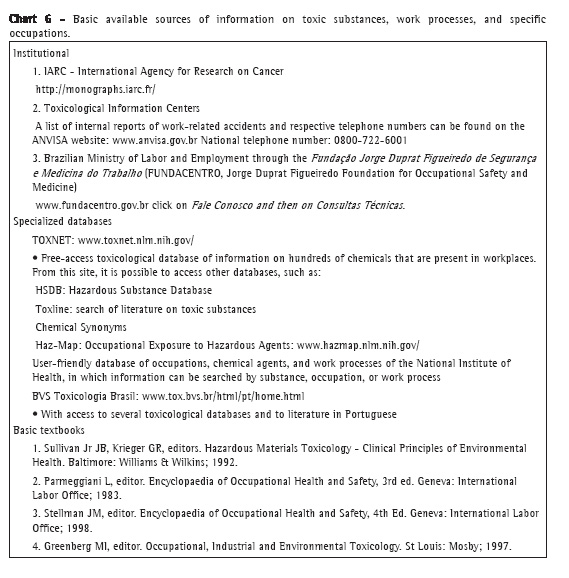 Some occupations, such as that of welder, foundry caster, part trimmer, toolmaker, tool sharpener, emery grinder, jackhammer operator, crusher operator, enameller, etc, are difficult to understand for pulmonologists who have never witnessed these activities. The nomenclature used by the patients to designate their occupations should be faithfully recorded and should not deter physicians from searching for more detailed explanations about what these designations mean in practice. In the absence of visits to the workplaces, other sources of information should be consulted (Chart 6).