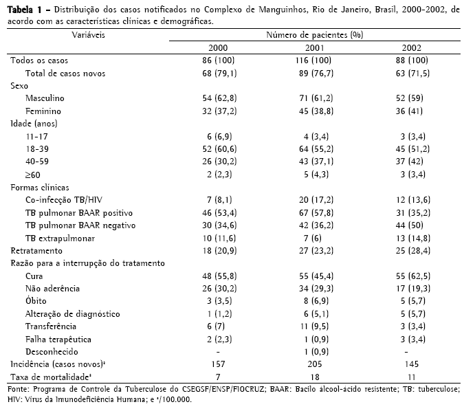 Um estudo retrospectivo dos aspectos epidemiológicos da tuberculose na comunidade do Complexo de Manguinhos localizado em área urbana do Rio de Janeiro, Brasil, 2000‑2002
