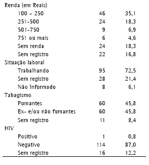 Apesar de o HIV ter sido apontado como um dos fatores responsáveis pelo aumento do número de casos de tuberculose no mundo,(3,5,6) em Bagé este fator não demonstrou relevância porque, de acordo com a distribuição dos casos de HIV relatados pela 7ª Coordenadoria da Saúde dessa cidade em 31 de julho de 2005,(25) a incidência absoluta de HIV positivos foi de 64, e a maioria dos pacientes deste estudo realizou exames sorológicos de HIV, sendo que apenas um dos 131 era portador do vírus. Em estudo realizado em Caxias do Sul, Rio Grande do Sul, o número de casos de HIV-positivo aumentou, em média, 13%, entre 1988-1995, enquanto que novos casos de tuberculose tiveram um pequeno decréscimo.(26)