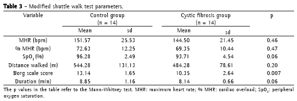Therefore, the objective of this study was to conduct a comparative analysis between children with cystic fibrosis and normal children in terms of their performance on the modified shuttle walk test (MSWT) and to determine the reproducibility of this test in the two populations studied.