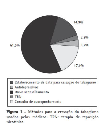 IntroduçãoO tabagismo causa doenças fatais, como DPOC (enfisema e bronquite crônica), câncer e doença cardíaca isquêmica.(1,2) Entre 1950 e 2000, cerca de 70 milhões de pessoas morreram devido ao uso de tabaco; nos próximos 50 anos, outros 450 milhões poderão morrer devido a doenças associadas ao tabaco.(3-5) A cessação do tabagismo é definida como abstinência completa de cigarros e de outros derivados do tabaco por pelo menos 6 meses, mas preferivelmente por um ano, confirmada através de medidas de monóxido de carbono no ar exalado ou outros testes objetivos.(6) Os métodos de intervenção para a cessação do tabagismo podem ser classificados em comportamentais, farmacológicos ou alternativos.(7-9) Os médicos têm papel importante na cessação do tabagismo,(9) uma vez que são vistos como uma fonte de informação confiável, e muitos pacientes tentam parar de fumar se aconselhados por seus médicos.(7) No entanto, alguns estudos mostraram que a maior parte dos médicos raramente recomenda a cessação do tabagismo ou auxilia fumantes a deixarem de fumar devido à falta de treinamento, habilidade ou confiança na cessação do tabagismo, bem como devido a outros obstáculos para realizar intervenções para a cessação do tabagismo.(10,11) Em Hong Kong, 77% dos médicos obtiveram informações sobre o status tabágico de seus pacientes, mas apenas 29% recomendaram a cessação do tabagismo.(12) Na Noruega, 78-93% dos médicos obtiveram informações sobre o status tabágico de seus pacientes quando seus pacientes apresentavam doenças associadas ao tabaco, mas apenas 25% dos pacientes receberam auxílio para a cessação do tabagismo.(13) Em um estudo que investigou médicos nos Estados Unidos, relatou-se que 67% dos médicos questionavam seus pacientes quanto ao tabagismo e que 74% dos médicos recomendavam a cessação do tabagismo; no entanto, apenas 35% auxiliavam seus pacientes a parar de fumar e 8% agendavam consultas de acompanhamento.(14) Um inquérito realizado em 2004 na China investigou 4.000 médicos e revelou que 48% questionavam seus pacientes sobre o status tabágico, 64% recomendavam a cessação do tabagismo, 6.1% estabeleciam datas para a cessação do tabagismo e 6.6% prescreviam farmacoterapia para auxiliar os pacientes a abandonarem o hábito de fumar.(15) O sucesso da abstinência tabágica é frequentemente determinado pelo conhecimento e práticas do médico quanto à cessação do tabagismo.