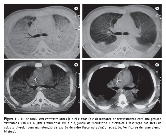 As controvérsias quanto ao papel e às diferentes manobras de recrutamento alveolar (MRA) em pacientes com SDRA descritas na literatura motivou-nos a descrever o caso de um paciente acometido com SDRA secundária a leptospirose, o qual foi submetido, com sucesso, a MRA, com altas pressões sustentadas, guiadas por TC.(3,4)
