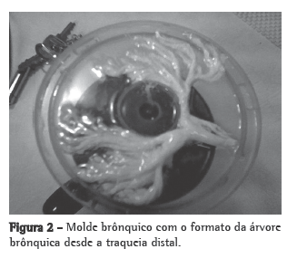 Na bronquite plástica, os moldes podem ser encontrados ou exteriorizados pela tosse, broncoscopia ou em espécimes cirúrgicos.(5) O formato dos modelos brônquicos mucoides pode ser segmentar, lobar ou, raramente, pulmonar.(6)